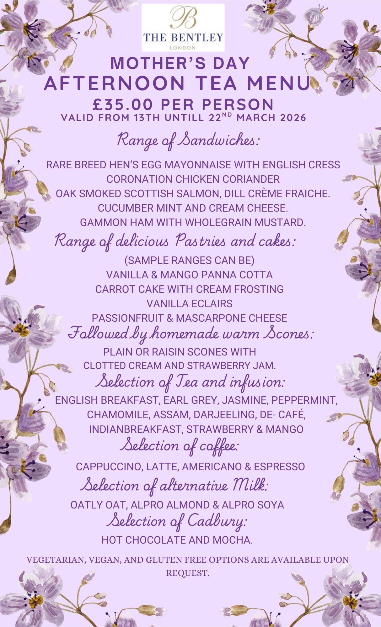 Mother's Day Afternoon Tea Menu