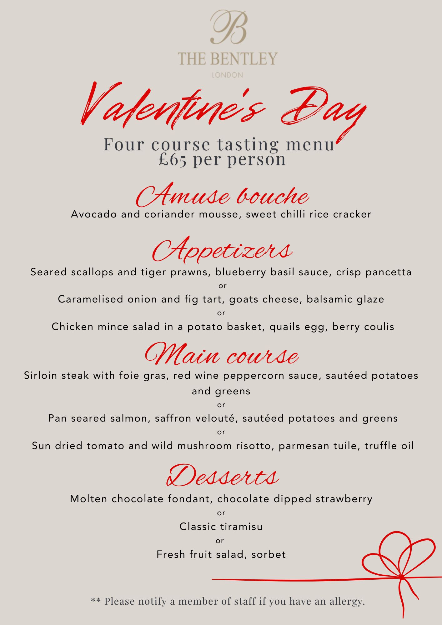 This exclusive Valentine’s offer is only available on the 14th February 2026. For more information, please call +44 (0)20 7244 5555 or send an email peridot@thebentley-hotel.com